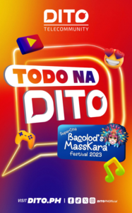 As a major sponsor, DITO will be part of numerous events from October 7 to 22, 2023, including the MassKara Food Festival, Miss Bacolod MassKara Coronation Night, Masskara Electrika Diva and Electric Float Parade.