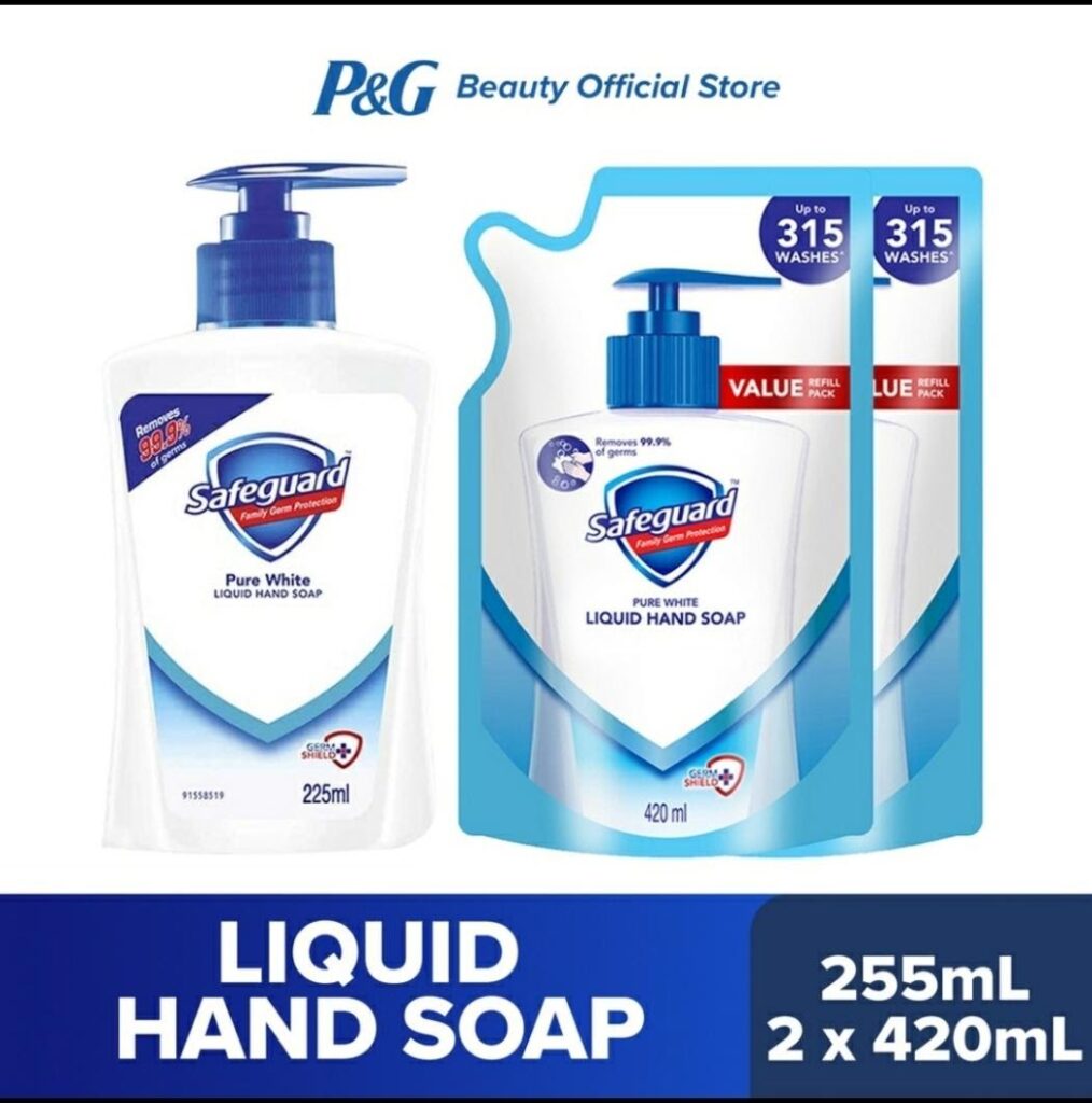 Safeguard Pure White Liquid Hand Soap (255mL)+2 refills (420mL)
