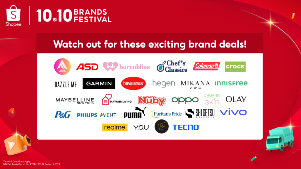 Exciting Brand Deals: Shoppers can look forward to a wide assortment of jaw-dropping deals from their favorite brands this 10.10! Techies can upgrade their setup with offers from brands like Oppo Official Store, Garmin, Tecno Mobile, realme, and vivo. Home & living enthusiasts can enjoy thrilling discounts from top brands Coleman Philippines, ASD Philippines, Hegen, and MAYFAIR LIVING. Meanwhile, fashion and beauty lovers can awra on a budget with deals from P&G Beauty, Olay, Innisfree, Above Athletica, barenbliss Official Store, DAZZLE ME Official Shop, Havaianas Philippines, Organic Skin Japan, PUMA, Puritan’s Pride Philippines, Mikana, and Shigetsu.
