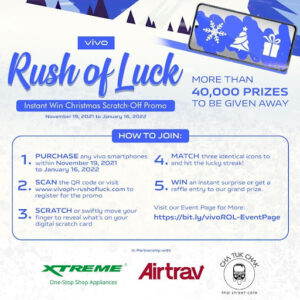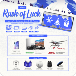 PHILIPPINES, November 17, 2021 – As Christmas draws near, everyone is yearning for the warmth of joy and the spirit of giving. This is why, Vivo — a leading global smartphone brand — brings people the holiday Rush of Luck with its instant-win scratch-off promo.
