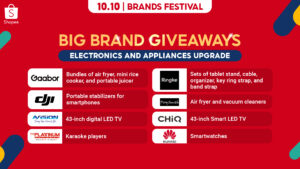 Leading up to October 10, you can look forward to daily free vouchers, bundles, newly launched items, and even a lifetime supply of products from your favorite electronics, personal care, health, fashion, and home brands. Check out some of the prizes you can expect from your favorite brands below: