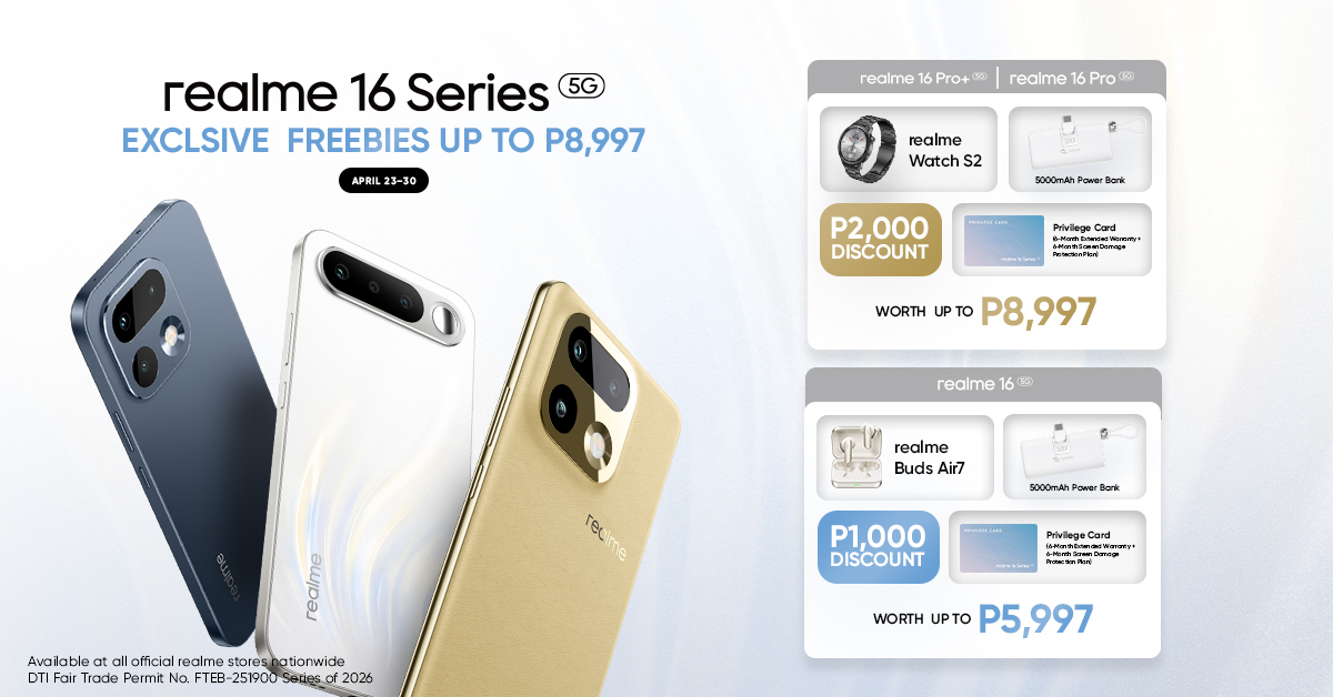 The realme 16 Series 5G is now available nationwide with the following SRPs: