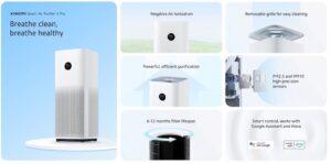 The top variant, Xiaomi Smart Air Purifier 4 Pro, features a 3-in-1 filtration system that combines electrostatic charge and mechanical filtration technologies to trap 99.97% of air pollutants as small as 0.3 microns****. So whether its pet dander, cotton fiber, or other pollutants, Xiaomi Smart Air Purifier 4 Pro will have you covered.
