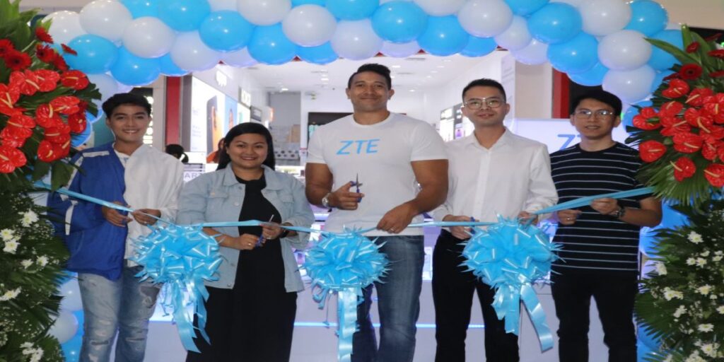 Social media celebrity and ZTE brand ambassador Eric Tai leads the ribbon cutting at the first ZTE kiosk at the 4 Level of SM Cyberzone, SM Grand Central Caloocan