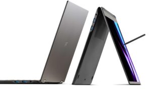 The LG gram Pro 2-in-1 (model 16T90SP) has won a CES 2024 Innovation Award and has recently been listed in the GUINNESS WORLD RECORDS™ as the lightest 16-inch 2-in-1 laptop. This versatile, ‘convertible’ laptop also features a WQXGA+ resolution OLED display.4 It boasts an incredibly slim and ultra-lightweight design, measuring just 12.4 millimeters thick and weighing only 1,399 grams, making it easy to transport and ideal for productivity and entertainment purposes. The 360-degree adjustable hinge, 4-way super-slim bezel design, responsive touchscreen and wirelessly-chargeable pen provide users with exceptional flexibility and an elevated user experience.