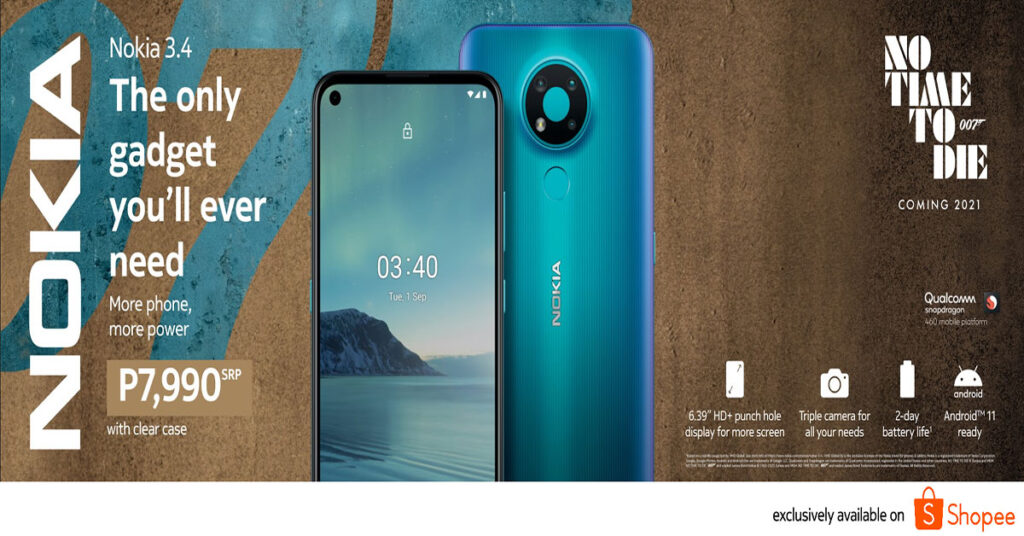 MANILA, PHILIPPINES, 30 NOVEMBER 2020 – HMD Global, the home of Nokia phones, today launches the Nokia 3.4 exclusively on Shopee.